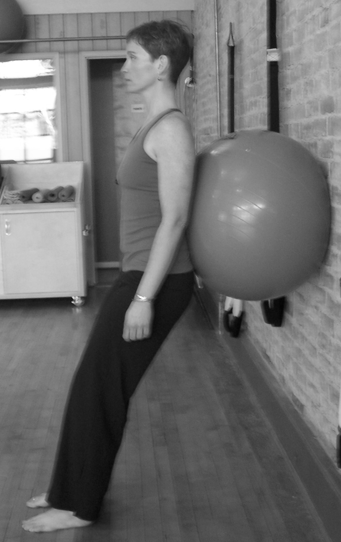 Place stability against the wall and lie down on your back with entire foot resting on the ball and a 90 degree angle between the hip and knee.