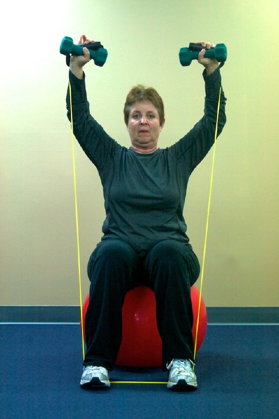 Shoulder Press – Integrated with Tubing Seated on a Stability Ball