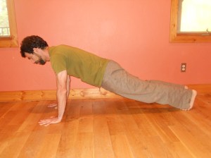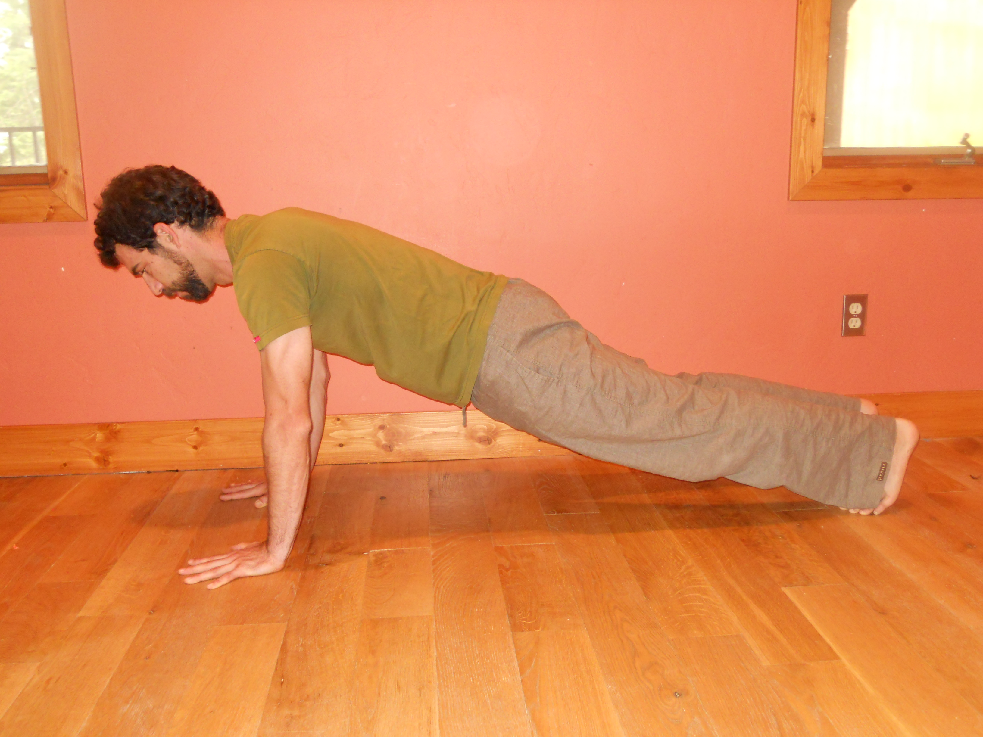 Next Step in a basic traditional Sun Salutation sequence is Plank Pose:
