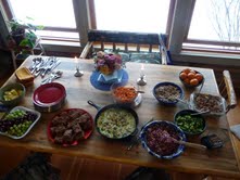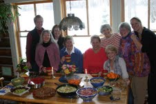The Jackson Hole group wanted a “party”, so we had one. Ten women met in Jayne’s cabin nestled alongside a beautiful meadow under the Tetons in Jackson Wyoming on a frosty winter morning to celebrate our journeys journey and the upcoming year. We decided to have a brunch, showcasing some of our favorite Genesis recipes. So who says you can’t have a party, eat clean, wholesome foods and have a blast? Our agenda was to learn to experience healthful cooking, enjoy good food, discover new friends, discuss new activities we might like to share and draw on the wisdom of our strengths. We each brought a favorite GT dish and a picture that depicted “health” as we would like to aspire. The best was a photo of a weight-lifting mama at the spry age of 94 pumping iron! There was a clothes exchange, kind of like a Filene’s basement sale. Three cuties found themselves dancing on the couch in size 6 jeans they discovered, (down from their previous size 12’s). The remark was “no more ifs, ands, or size-12 butts” anymore!