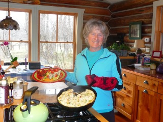 7:45 The cats and dogs get fed and I warm up a slice of a huge frittata made yesterday for a total of 20+ egg white breakfast banger (that will feed us for a few breakfasts)…consisting of broccoli, beet greens, spinach, peppers, onions, asparagus, Asian mushrooms, garlic, a potato and about any other veggie or green that needs eating. Stove-top cooking while I shower. Topped off with an avocado and some salsa. Today I had turkey bacon along with it.